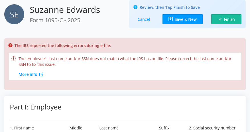 **Don't forget to e-file your corrections with the IRS by clicking 'E-File' at the top of your filing. Don't forget to send out updated employee copies by downloading your PDFs or by ordering our print and mail service!
